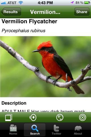 É abrangente-todos os pássaros e animais nativos estão incluídos, juntamente com fotos, descrições detalhadas, áudio, marcas de campo e muito mais. Os usuários também podem procurar espécies ameaçadas de extinção ou espécies venenosas/perigosas nativas de qualquer um dos 100 parques nacionais apresentados.